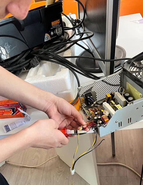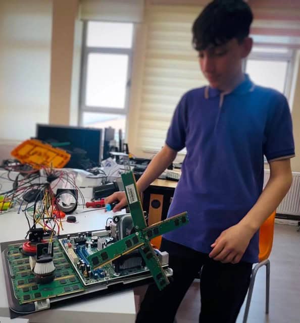 Elektronik atıklardan yel değirmeni yaptı